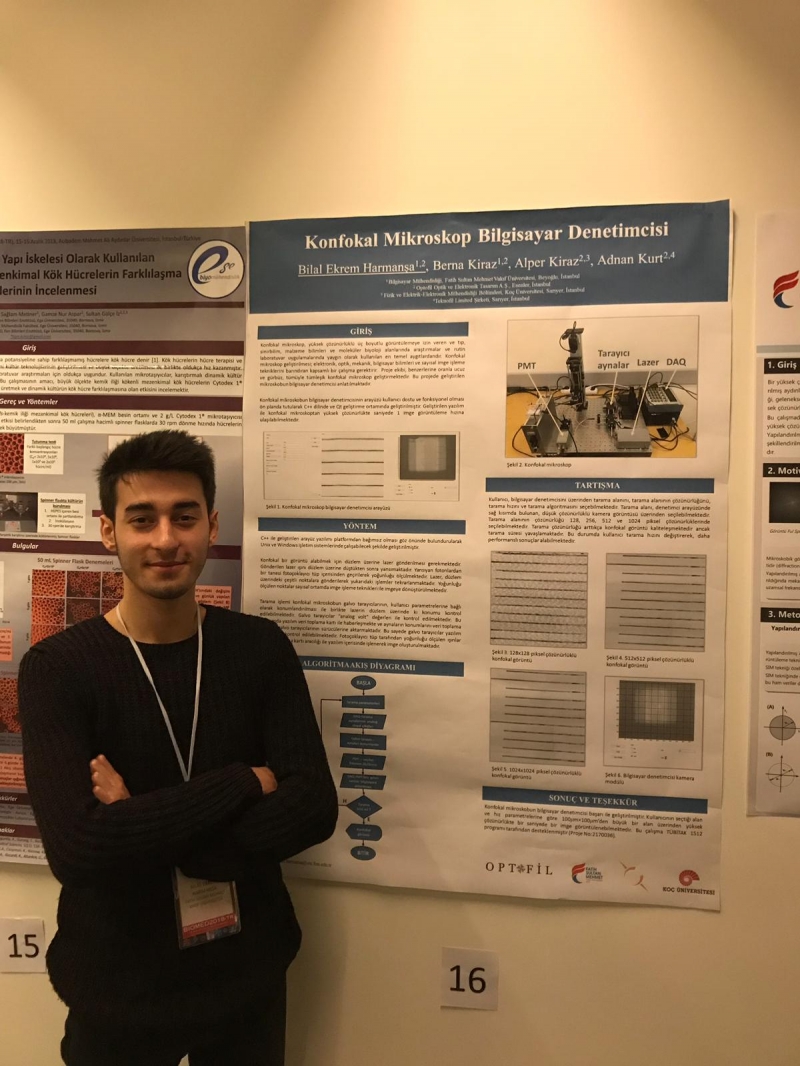 Bilgisayar Mühendisliği Bölümü son sınıf öğrencimiz Bilal Ekrem Harmanşa, Bilgisayar Mühendisliği bölümümüz öğretim üyelerinden Dr. Öğretim Üyesi Berna Kiraz, Koç Üniversitesi Fizik bölümünden Prof. Dr. Alper Kiraz ve Adnan Kurt tarafından geliştirilen "Düşük Maliyetli, Masaüstü Lazer Taramalı Konfokal Mikroskop Sisteminin Geliştirilmesi" isimli projede bilgisayar denetimcisinin geliştirilmesinde görev almıştır.
