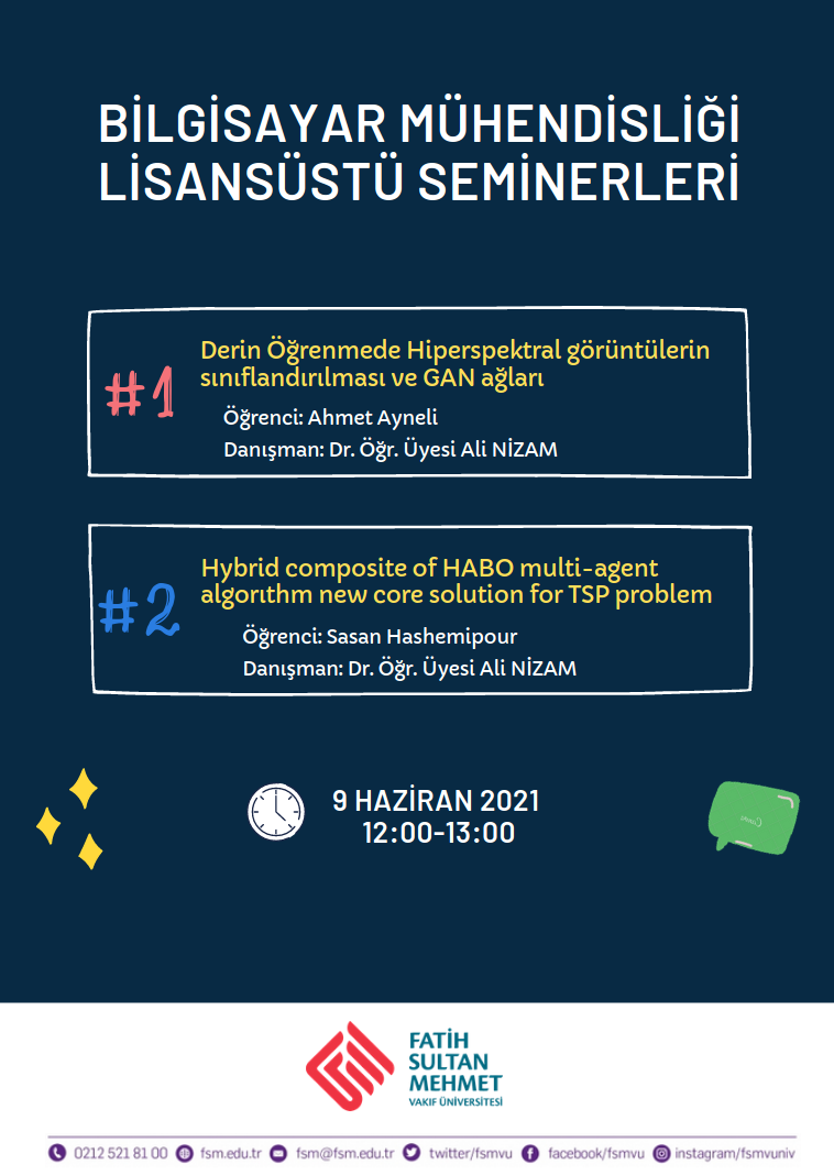 - Sasan HASHEMIPOUR - Hybrid composite of HABO multi-agent algorıthm new core solution for TSP problem, Danışman: Dr. Öğr. Üyesi ALİ NİZAM