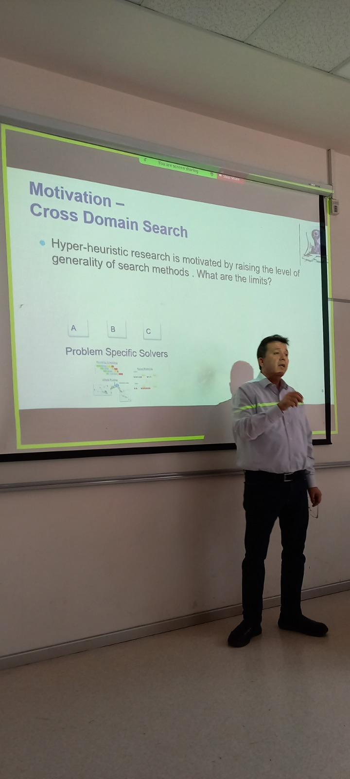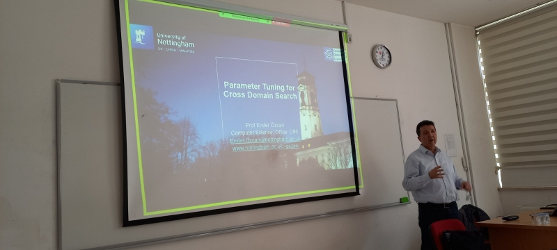 "Genel Optimizasyon Algoritmalarında Parametre Ayarı" semineri 19 Nisan Çarşamba saat 14:00'da H-D102 numaralı sınıfta gerçekleştirildi. Nottingham Üniversitesi Öğretim Üyesi Prof. Dr. Ender Özcan tarafından gerçekleştirilen seminerde, genel optimizasyon algoritmaları hakkında genel bir bilgi verildi ve bu alanda hocamızın yapmış olduğu çalışmalardan, gelecekte yapılabilecek çalışmalardan bahsedildi. Seminer sonunda hocamız öğrenci ve öğretim üyelerimizin sorularını cevaplandırdı. Prof. Dr. Ender Özcan hocamıza vermiş olduğu seminer için teşekkür eder, başarılarının devamını dileriz.