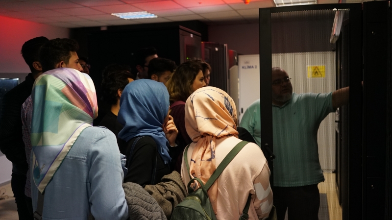 UHeM’in İTÜ Ayazağa Yerleşkesi içerisindeki binasında öncelikle Yüksek Başarımlı Hesaplama ile ilgili seminer alan öğrenciler daha sonra sistem odasında sistemleri birebir görme şansını yakaladı. Burada, sistemler ve onların yönetimi ile ilgili bilgiler UHeM’in uzman personeli tarafından öğrencilerimize aktarıldı.