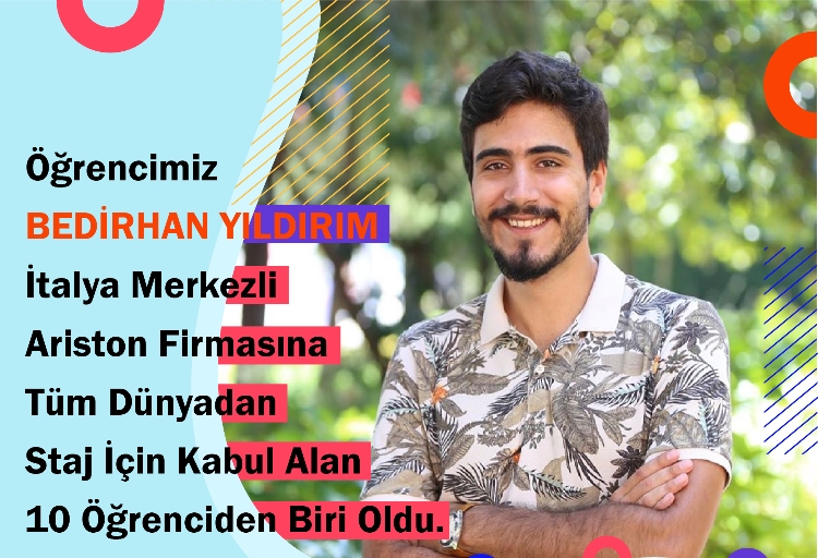 Uluslararası İlişkiler Daire Başkanlığı Uluslararası Programlar Koordinatörlüğü’nün Erasmus Staj Konsorsiyumu kapsamında anlaşma sağladığı uluslararası partnerimiz Ariston Thermo Group’un, İtalya’da düzenleyeceği 6 aylık Bilgi ve İletişim Teknolojileri Staj Programına kabul edilen Bedirhan Yıldırım, programa Türkiye’den dâhil olan tek öğrenci oldu.