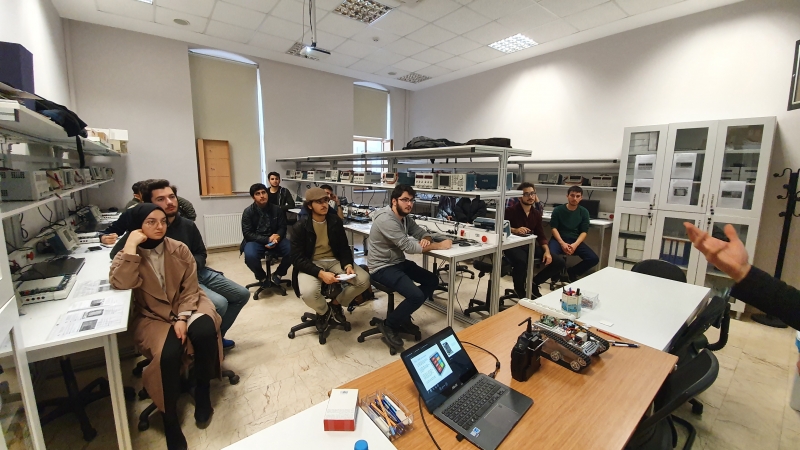 Bilgisayar Mühendisliği Bölümünde, 20 Kasım 2019 tarihinde Bilgisayar Mühendisliği Bölümü Hocalarımızdan Öğr. Gör. Musa AYDIN ve Elektrik-Elektronik Mühendisliği Araştırma Görevlisi Ömer Faruk GÖKSU tarafından “Robotik Kodlamaya Giriş” semineri verildi. Seminerde, taşıyıcı bir robot platformunun nasıl planlanacağı ve kurulacağı anlatılarak bu platformun istenilen amaca yönelik kodlanması gerçekleştirildi.